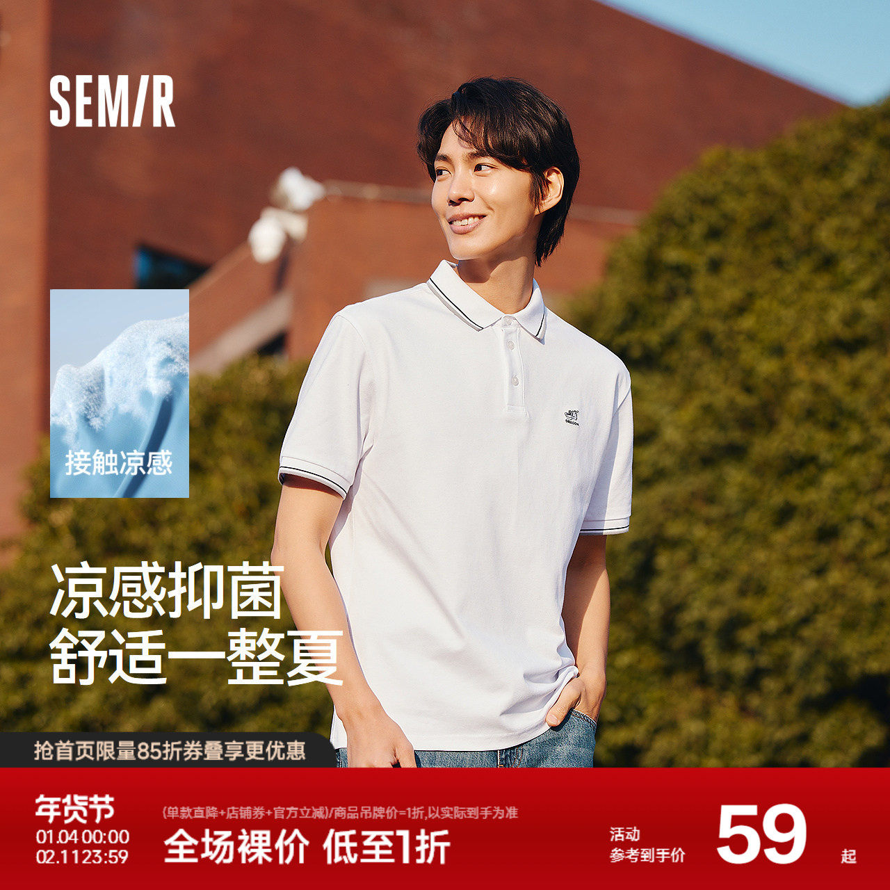 森马POLO衫男凉感抑菌上班通勤t恤短袖上衣简约百搭夏装绣花青年