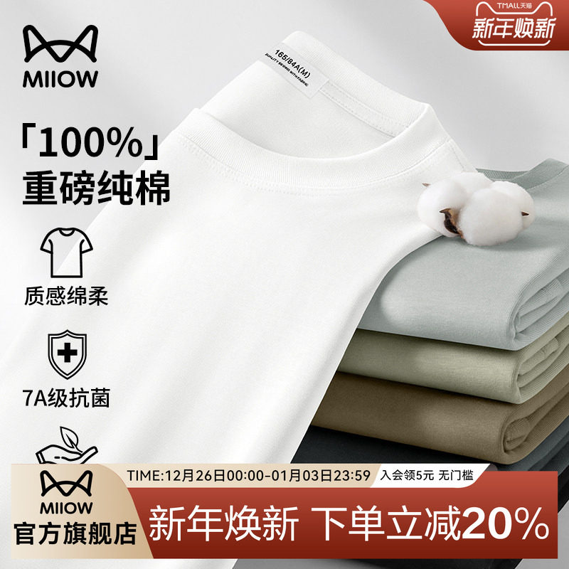 猫人320g重磅精梳纯棉短袖T恤男新款夏装柔软透气7A抗菌凉感上衣