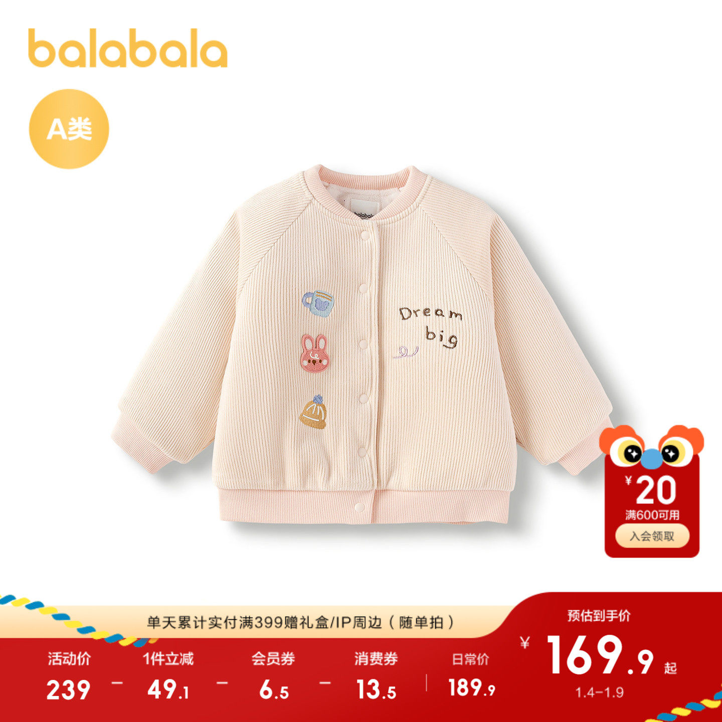 【商场同款】巴拉巴拉童装儿童外套女童衣服2025新款秋冬加绒温暖