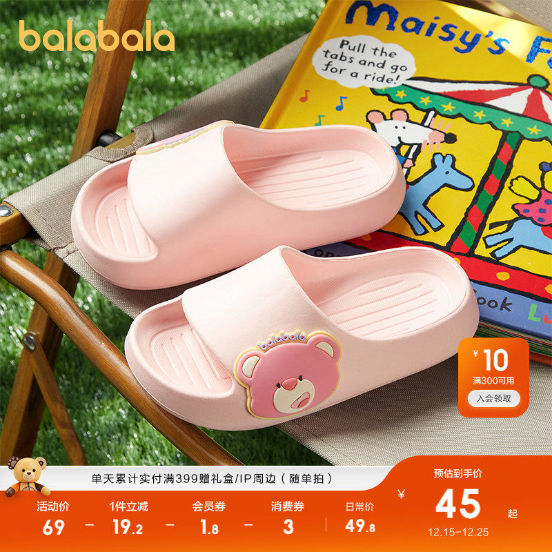 巴拉巴拉儿童平底拖鞋凉拖夏季居家男童女童浴室拖鞋软底轻便舒适