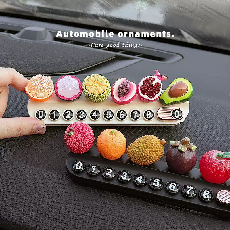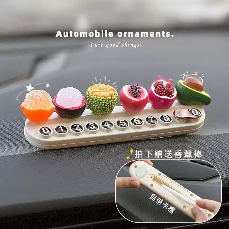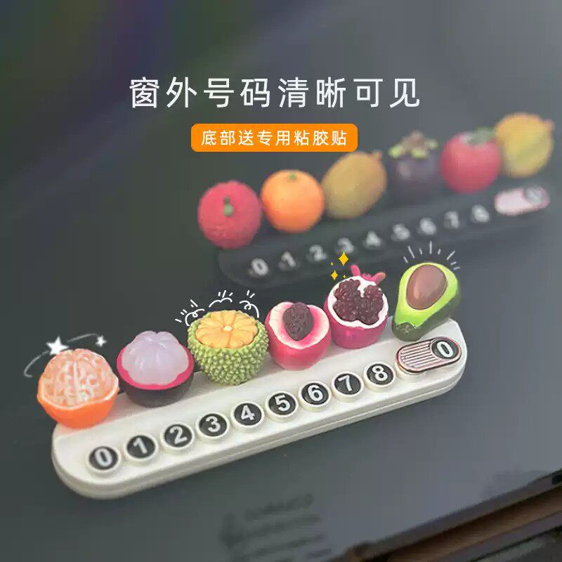 挪车电话牌女高级创意汽车内车载临时停车号码牌移车水果摆件装饰