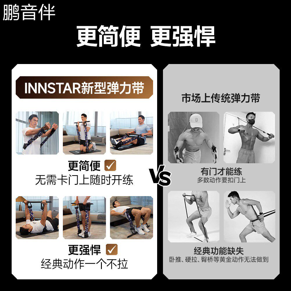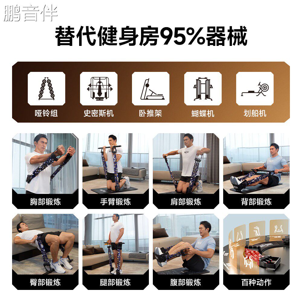鹏音卧推神器居家用健身器材运动练拉背扩胸肌训练拉力绳器拉伸弹力带