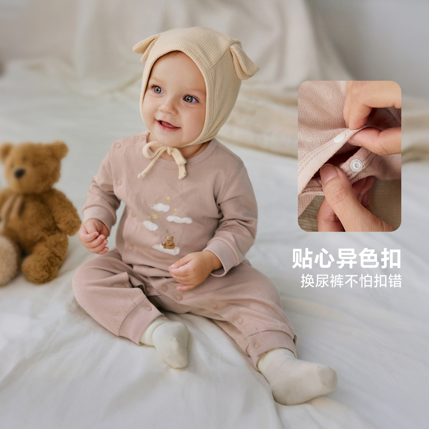 英氏婴儿衣服宝宝春季连体衣新生婴幼儿哈衣春秋初生纯棉和尚爬服