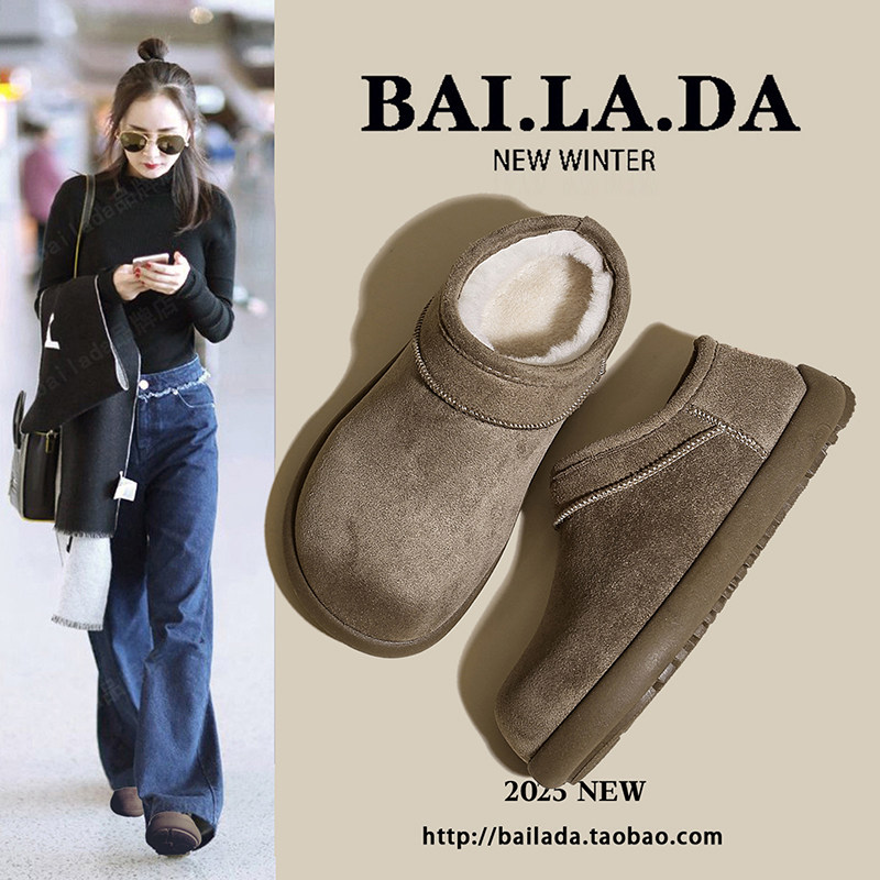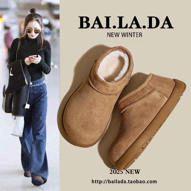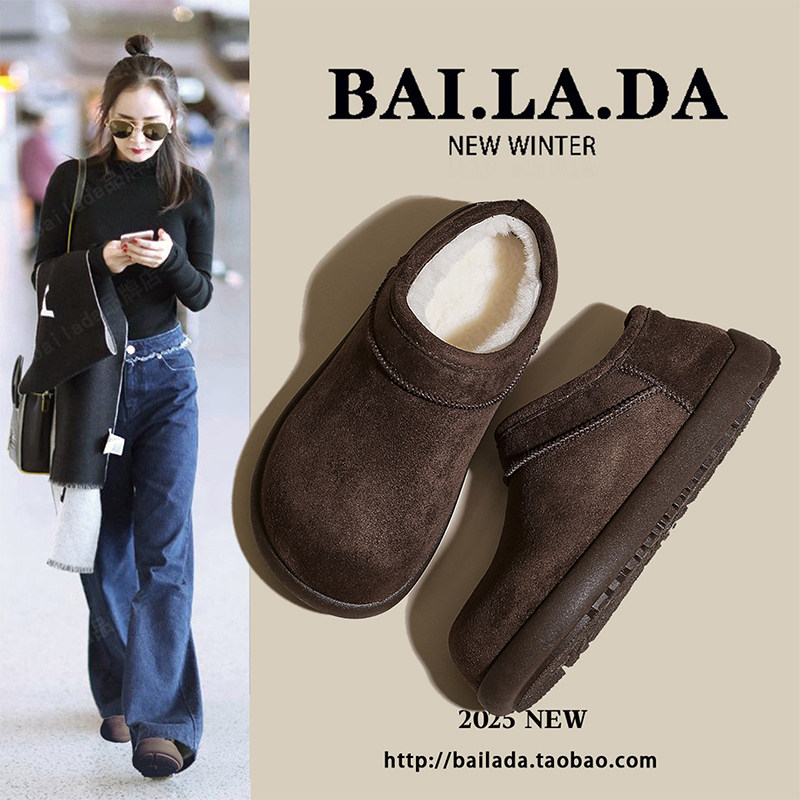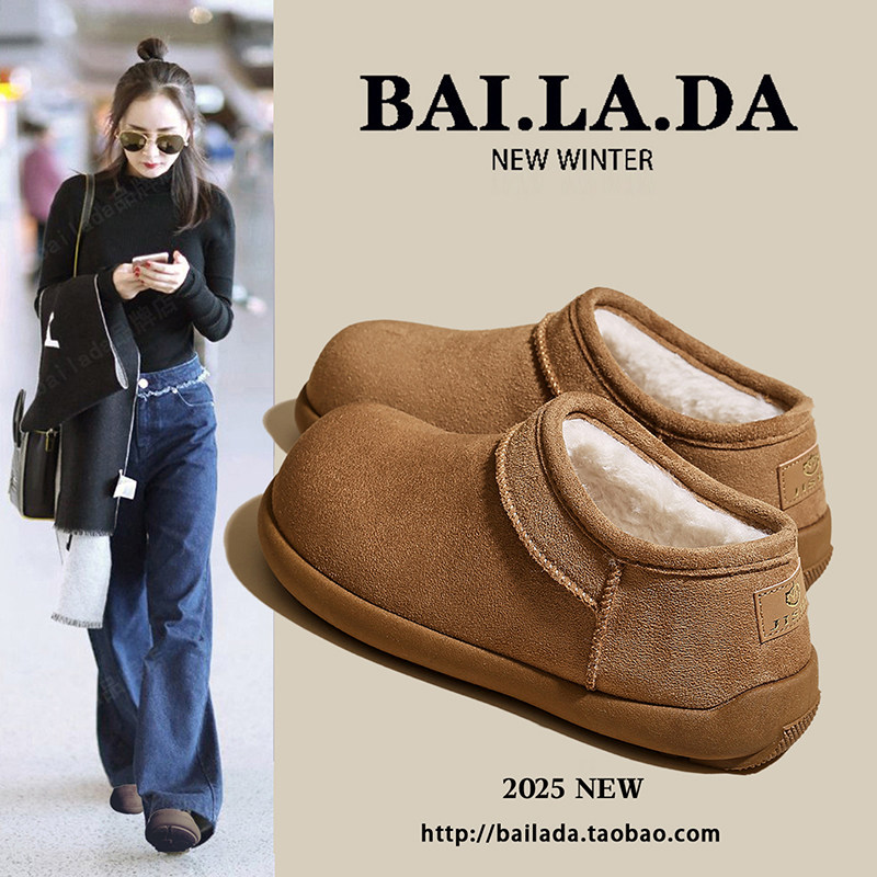 低帮厚底雪地靴女2025新款冬季懒人一脚蹬毛毛棉鞋加绒加厚女鞋子