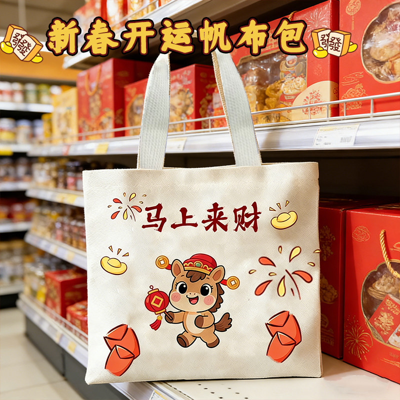 马年新款帆布包卡通时尚包女手提袋可爱通勤百搭女包便携大容量