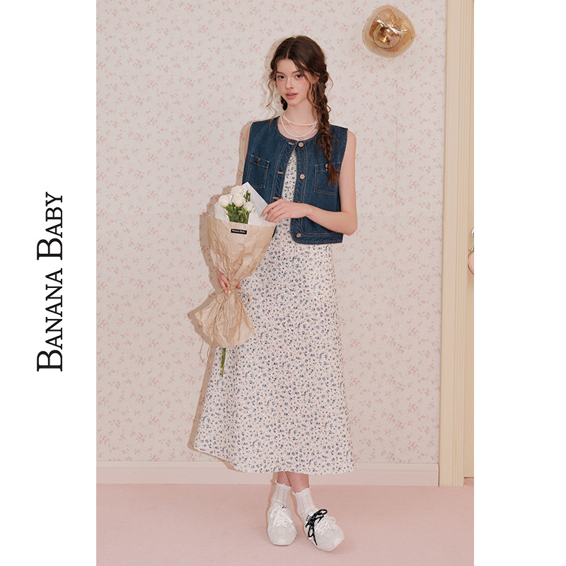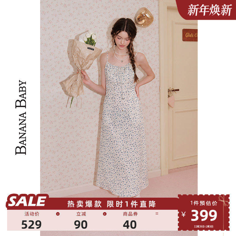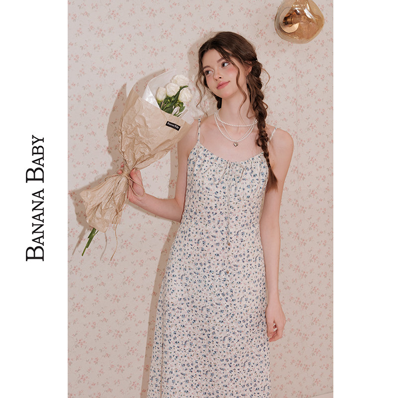 BANANA BABY2025年新款小清新度假风吊带连衣裙女碎花长裙子