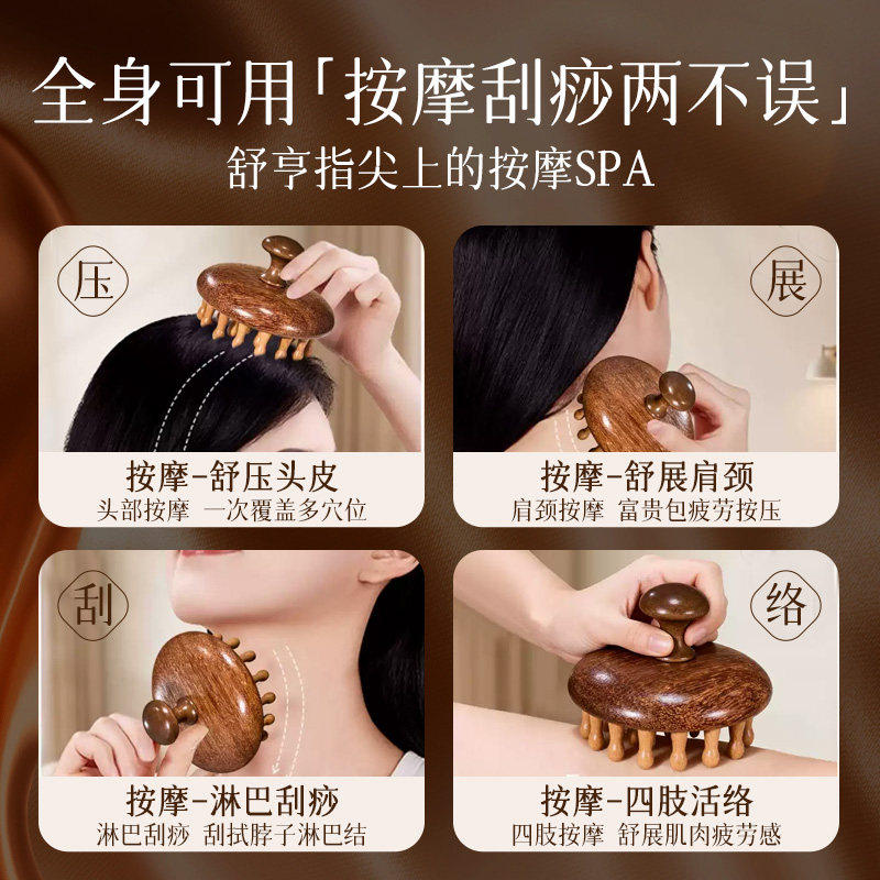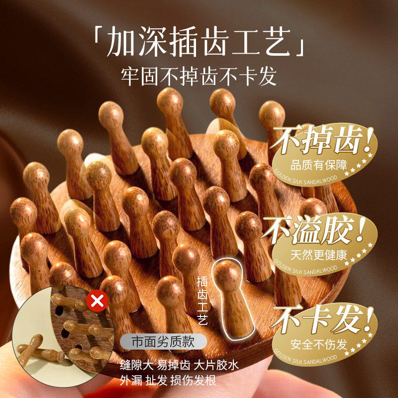 金丝檀木头皮头部按摩梳子天然圆盘经络疏通毛囊养发神器头疗工具