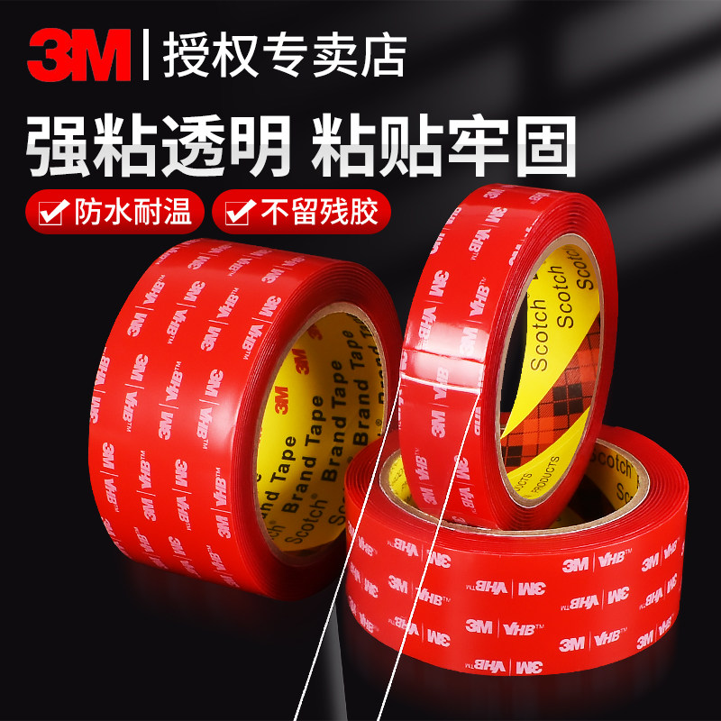 3m4910强力透明双面胶高粘度万次纳米超薄无痕汽车专用固定支架摆件雨眉晴雨挡ETC耐高温防水亚克力魔力胶带