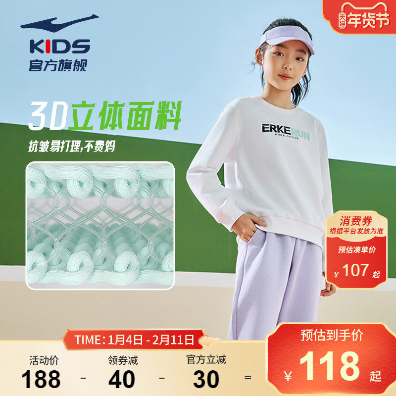 鸿星尔克童装儿童套装秋季新款女童运动服卫衣长裤两件套休闲衣服
