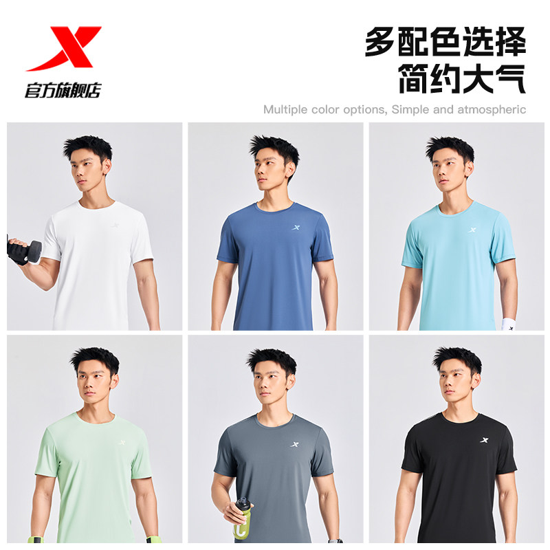特步速干T男夏季宽松短袖冰丝户外跑步T恤透气上衣男士健身运动服