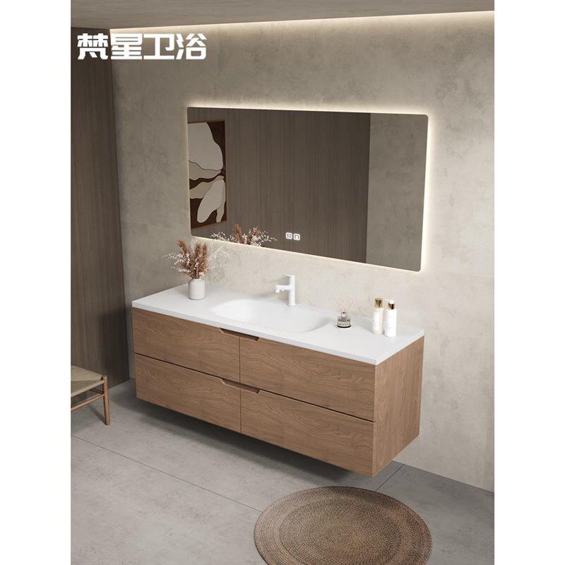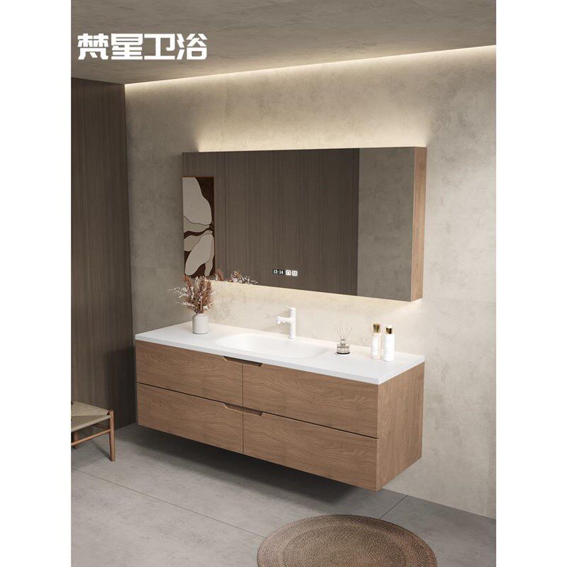 原木色可丽耐一体盆浴室柜组合定制卫生间洗漱台盆高端实木卫浴柜