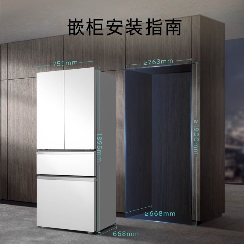 美的华凌神机547双系统超薄零嵌入式十字双开四门家用一级冰箱