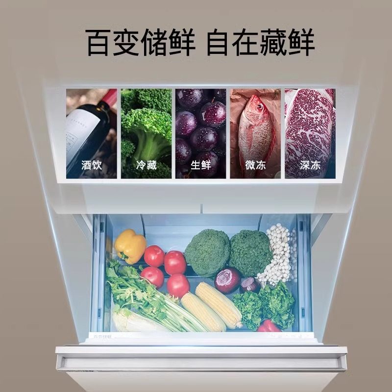 政府补贴美的M60机皇550零嵌入式双系统制冰冰箱家用法式双开四门