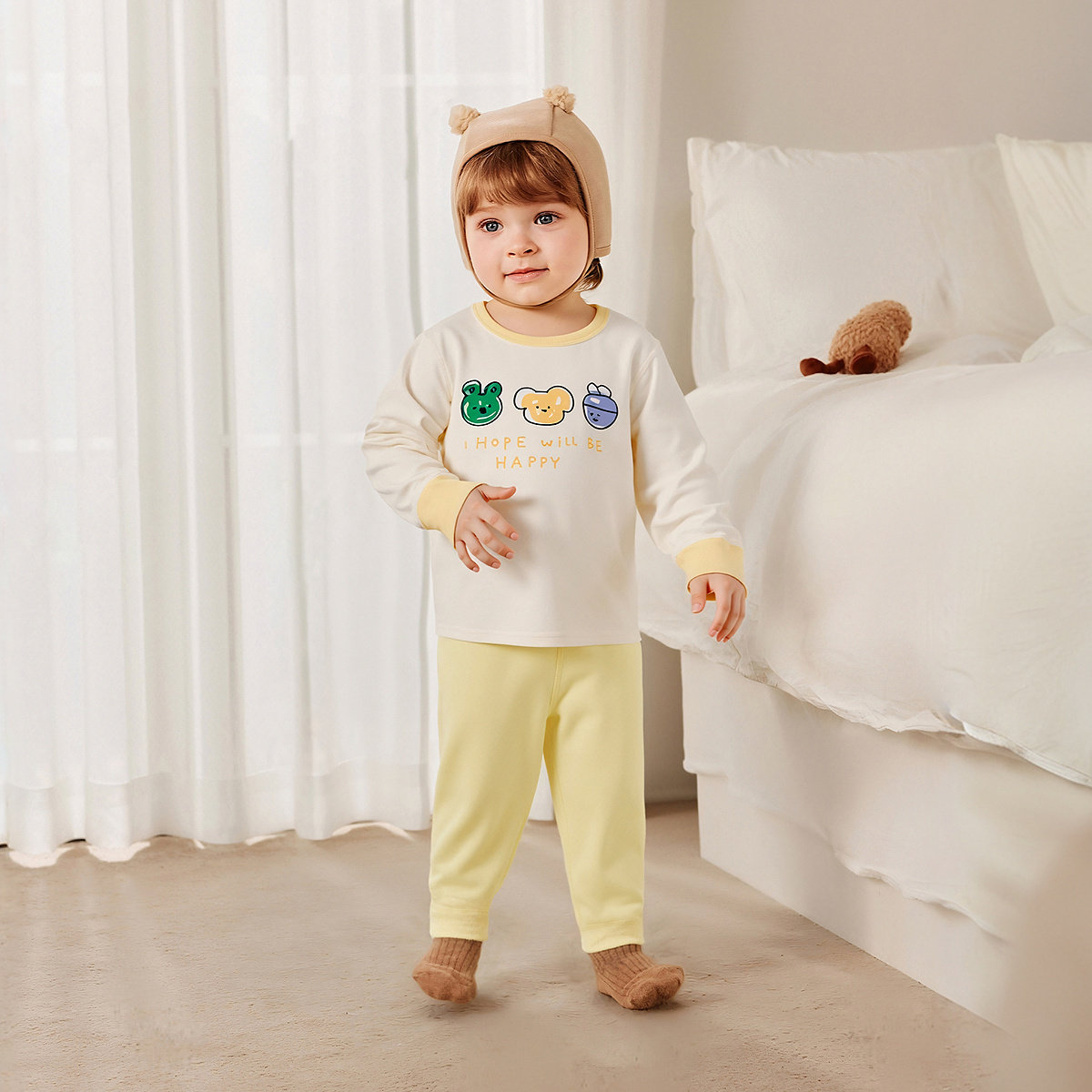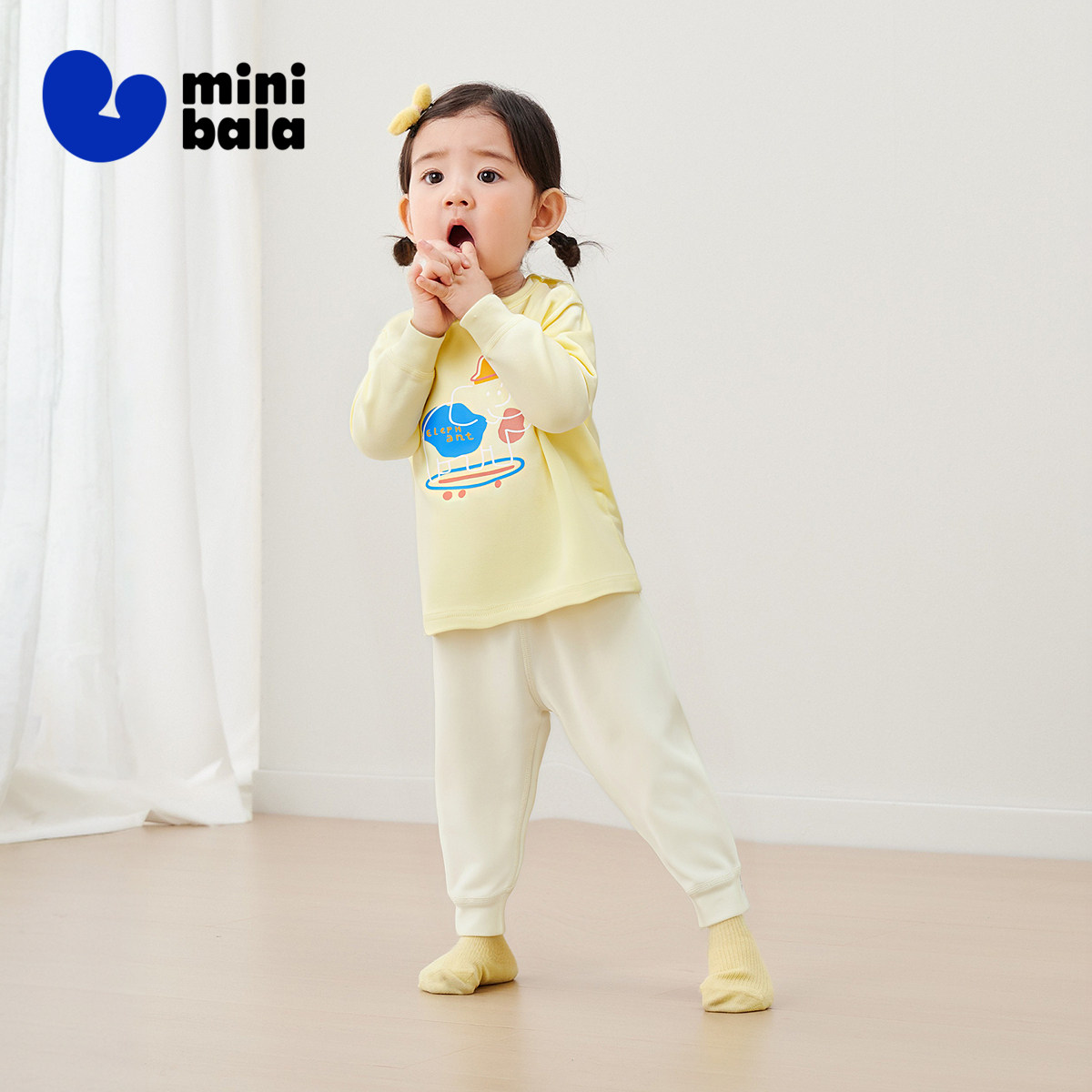 【纯棉】迷你巴拉男女童宝宝高腰护肚家居服睡衣套装秋衣裤两件套