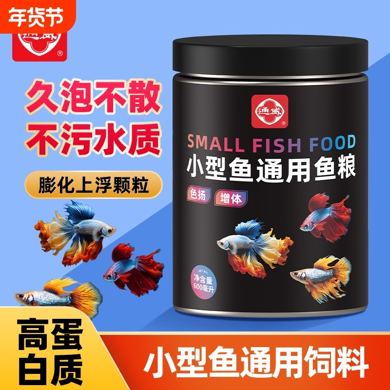 孔雀鱼食小颗粒红绿灯小型鱼粮斗鱼金鱼观赏热带鱼食鱼饲料沉底