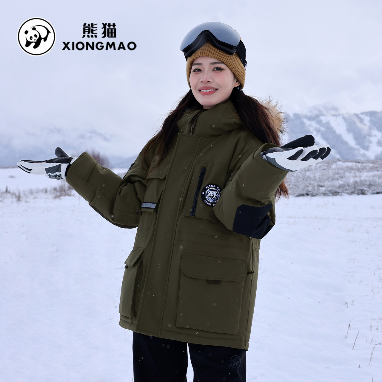 1熊猫X骆驼飞翼者加厚款/毛领款派克羽绒