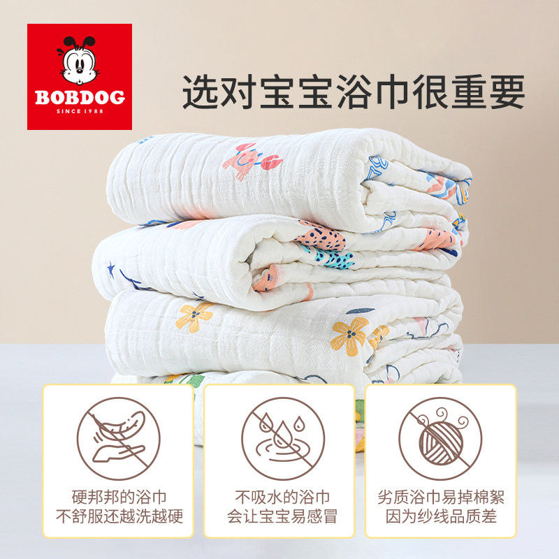 巴布豆纱布浴巾婴儿新生a类纯棉超软全棉6层宝宝洗澡专用裹大尺寸