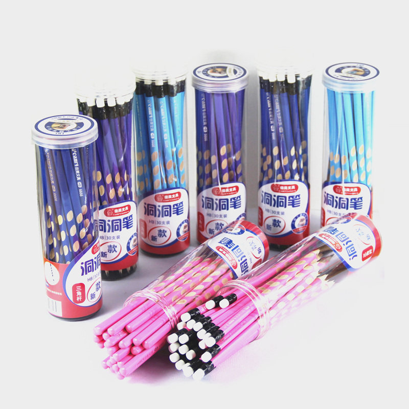 齐心洞洞铅笔小学生幼儿园一年级专用HB儿童铅笔正姿洞洞笔铅笔hb矫正握姿三角杆彩杆初学者用