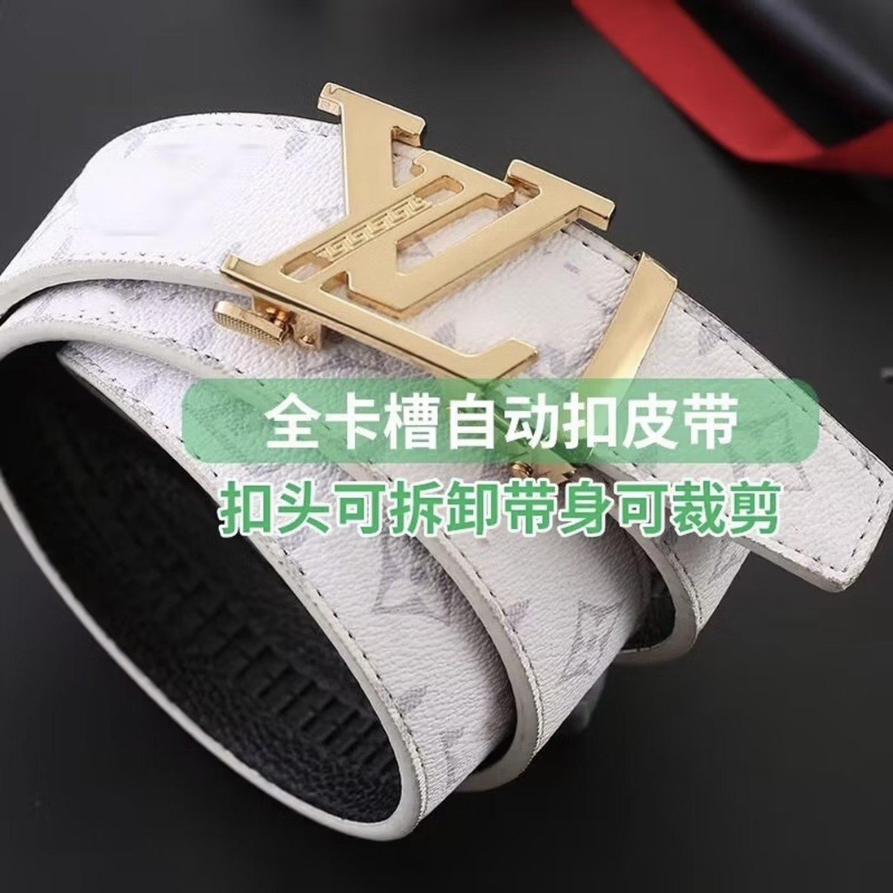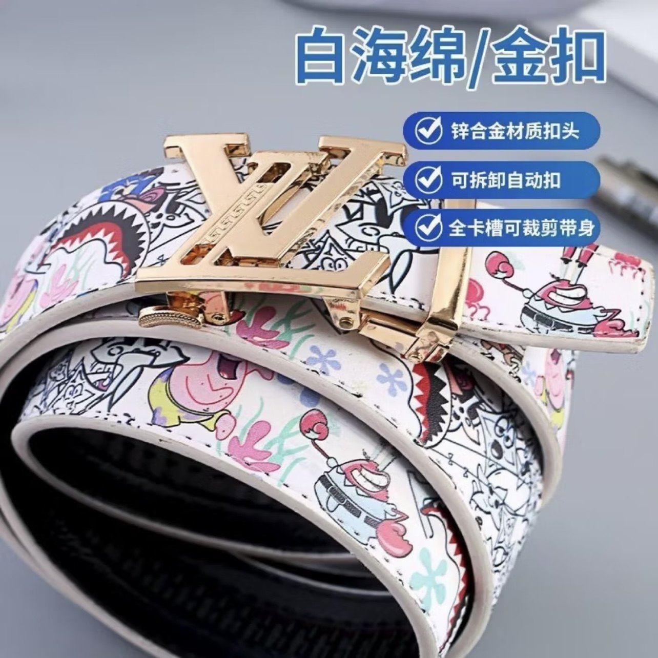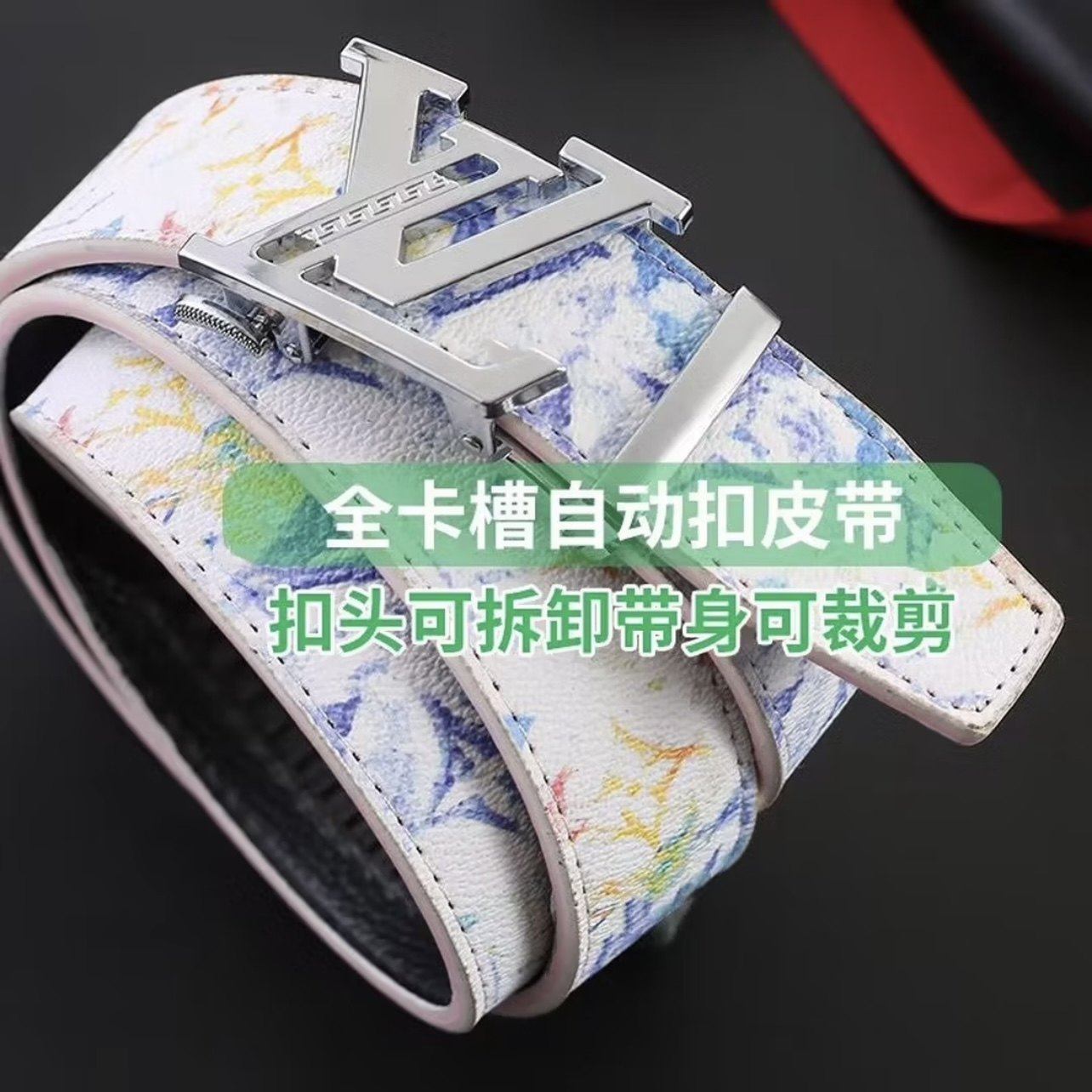 新款潮流男士皮带真皮百搭字母涂鸦自动扣学生腰带牛仔裤潮流网红