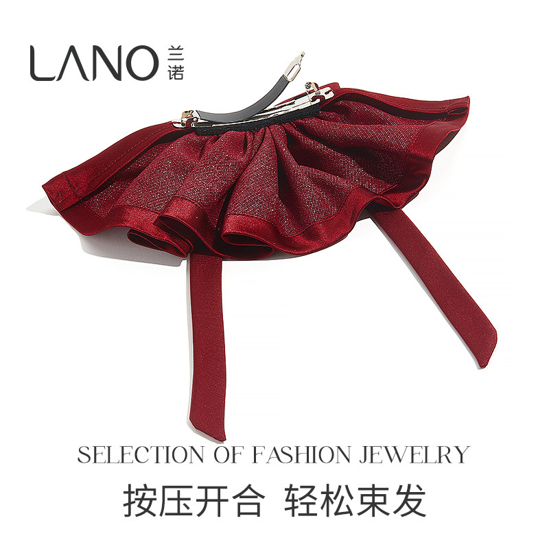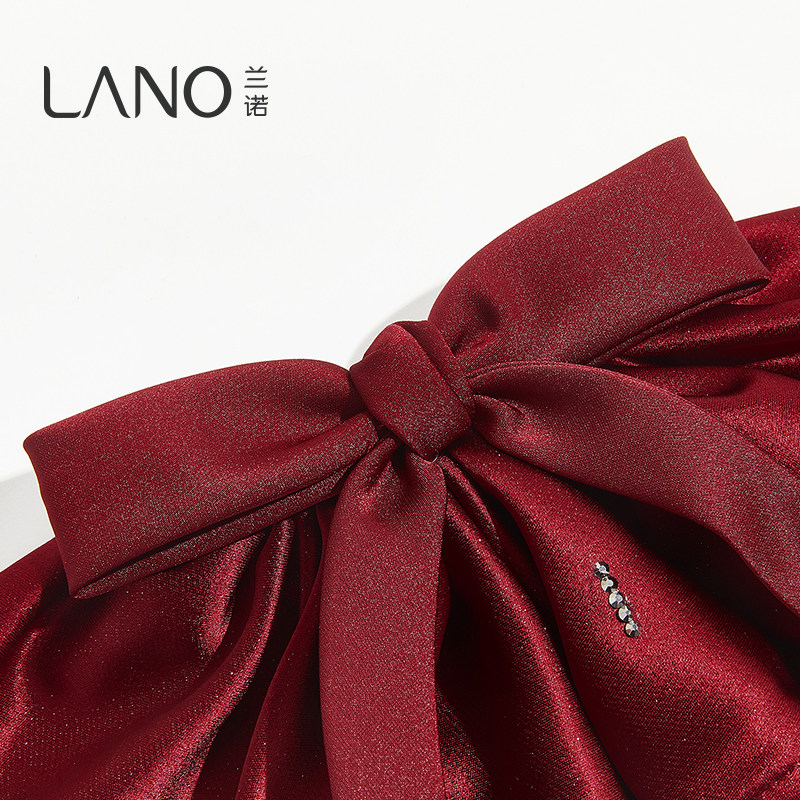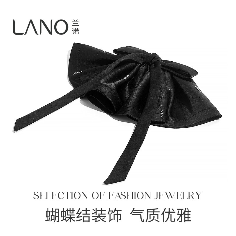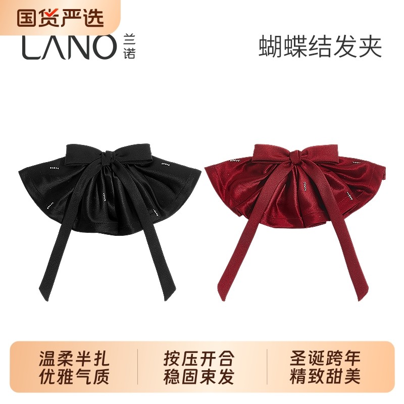 兰诺红色黑色蝴蝶结发夹女2025新款高端后脑勺半扎发一字夹子头饰