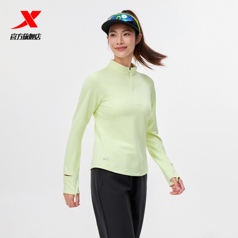 特步半拉链长袖T恤女秋冬新款运动套头内搭立领卫衣975428030101