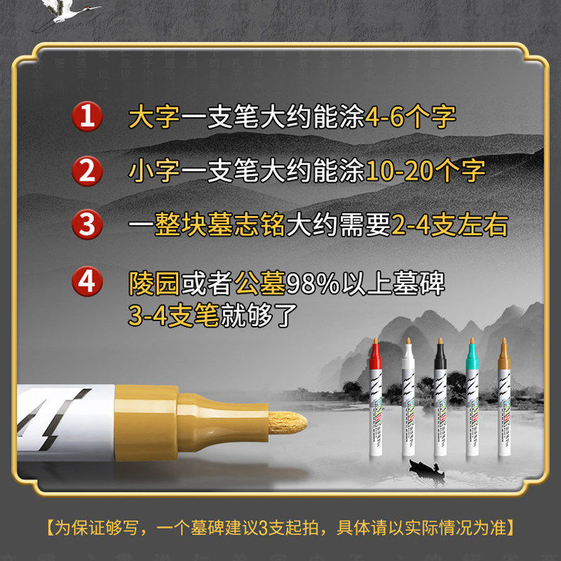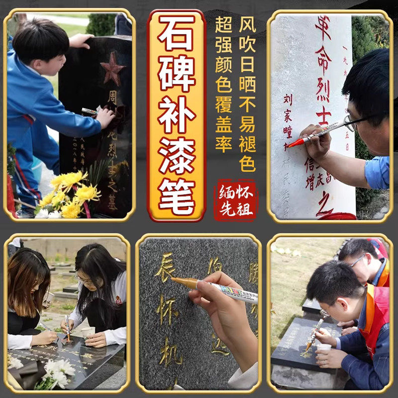 晨光补漆笔石碑文防水防晒不掉色油漆笔清明扫墓辈文补色多功能工业金色墓石碑上色红色记号笔描字笔描碑描红