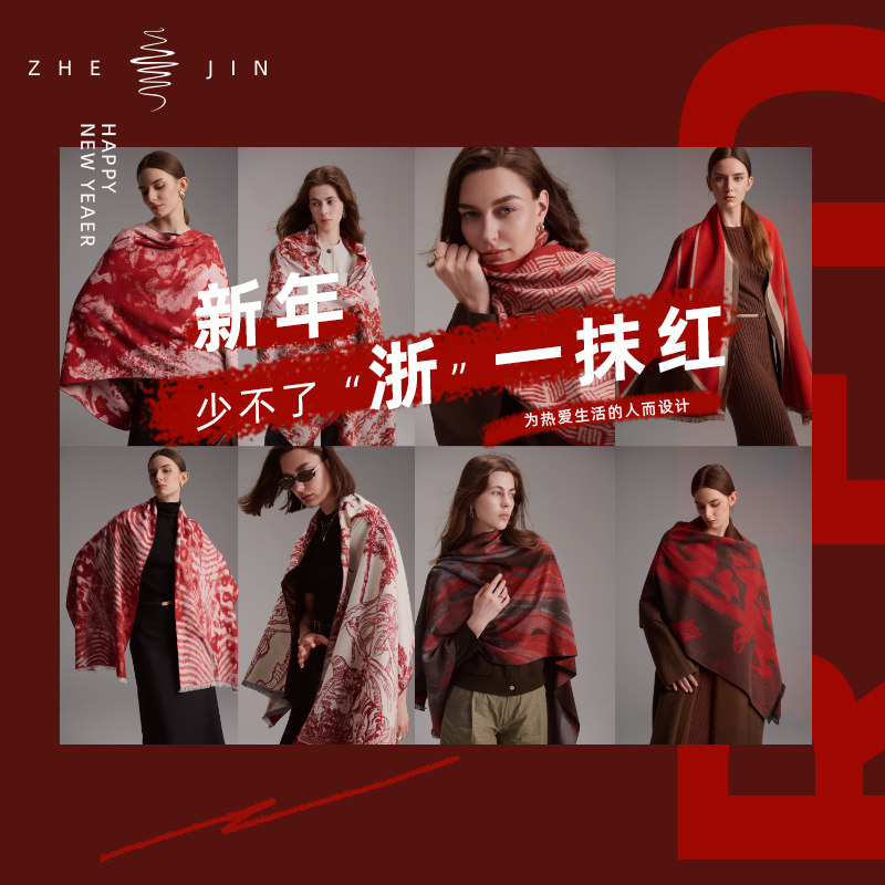浙锦【红运礼物100%真丝拉绒围巾】桑蚕丝女士绒感保暖披肩礼盒装