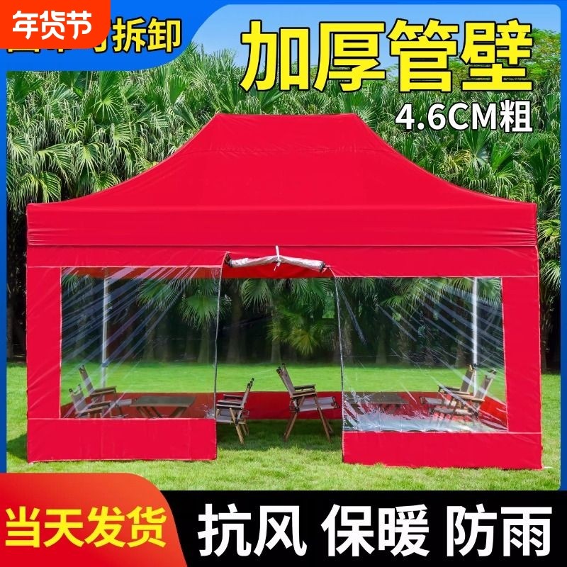 四脚伞帐篷围布透明防风防雨雨棚夜市摆摊用户外遮阳棚围挡太阳伞