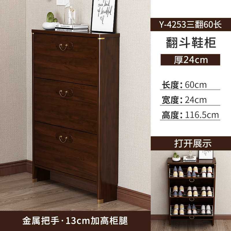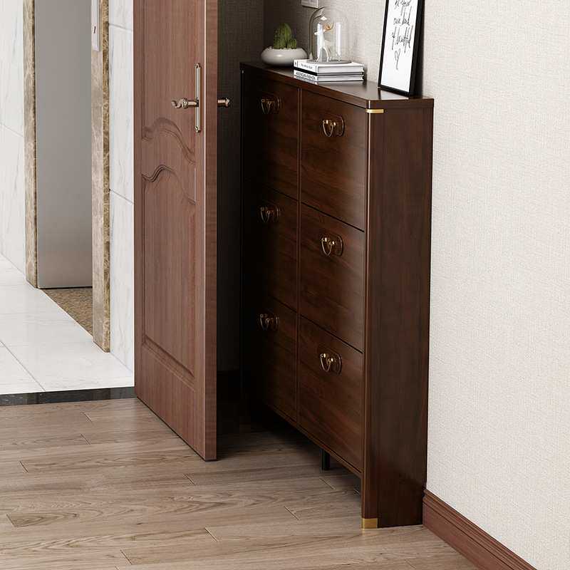 新中式超薄翻斗鞋柜家用门口实木框入户靠墙玄关柜子小户型窄鞋