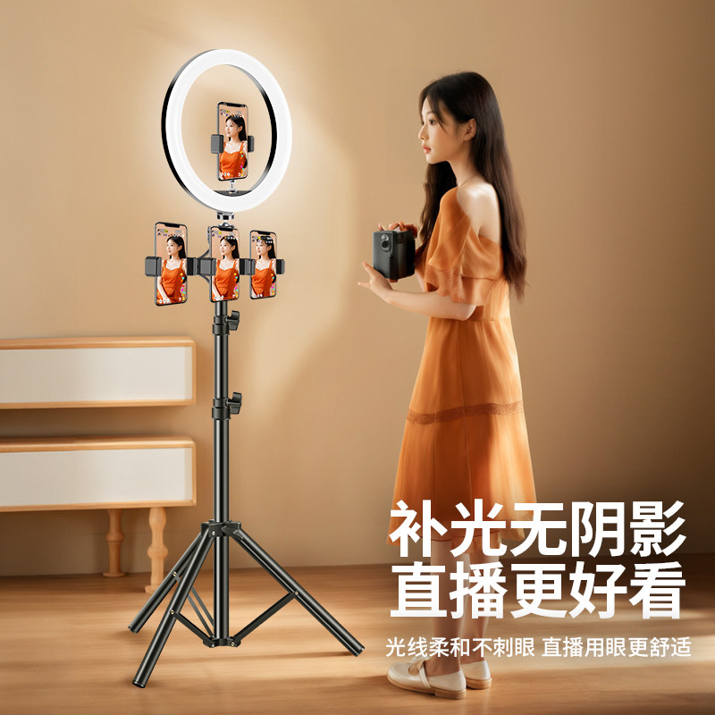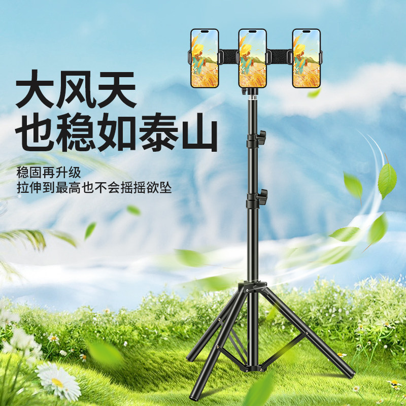 2025新款专业手机直播支架带补光灯多手机双机位三机位落地式户外主播自拍视频摄影便携三脚架