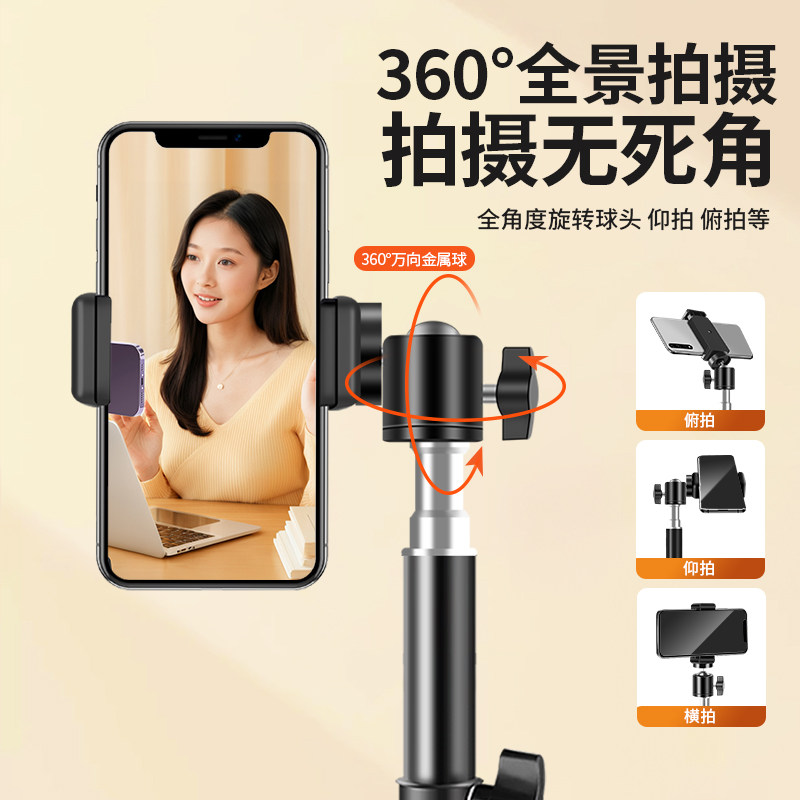 [合金四脚架]手机直播支架自拍杆落地三脚架2026新款拍摄拍照视频专用相机通用旅游便携360度旋转多功能神器