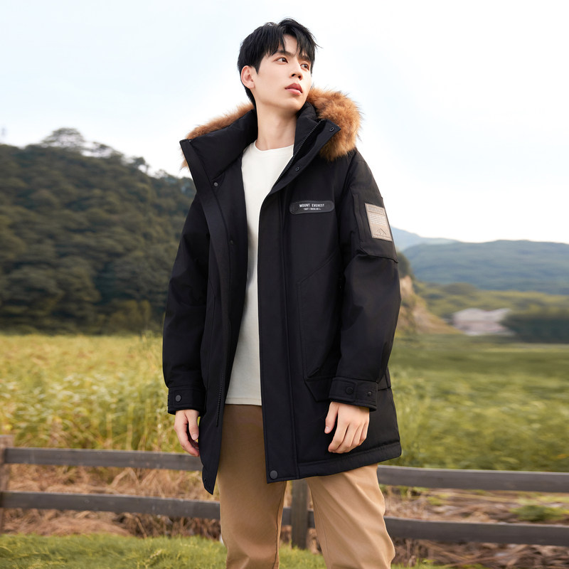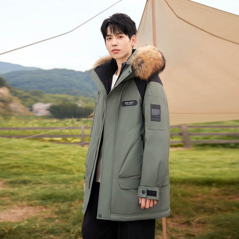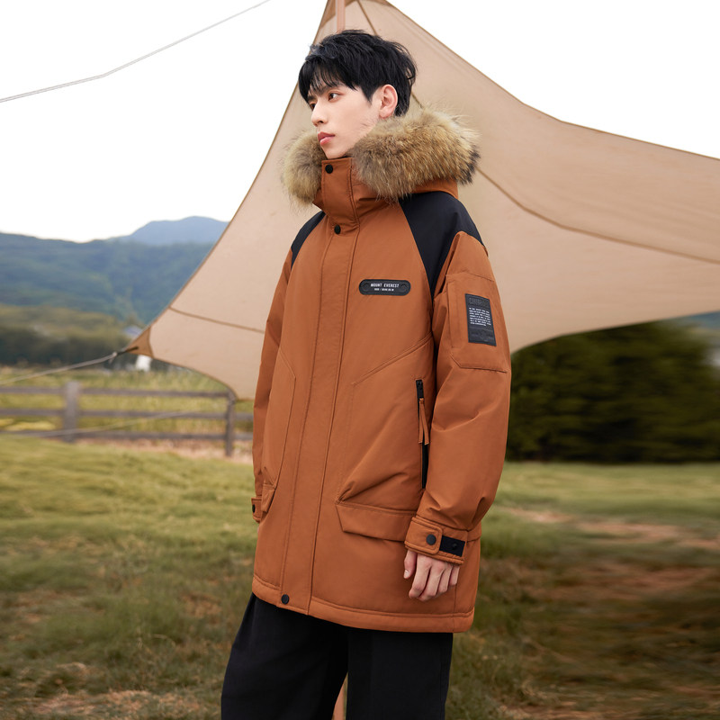 雪中飞2025冬新款情侣男女同款羽绒服工装貉子毛领派克时尚保暖