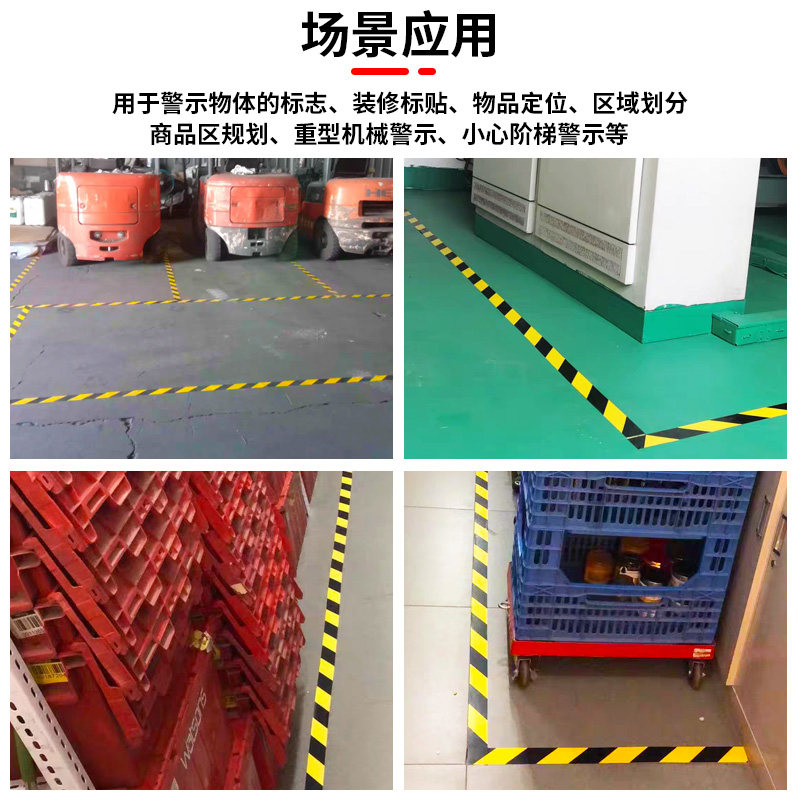 黄黑PVC警示胶带黑黄斑马线消防警示贴纸地贴警戒地标贴地板地面彩色胶带工厂分区划线区域划分隔离地板胶带