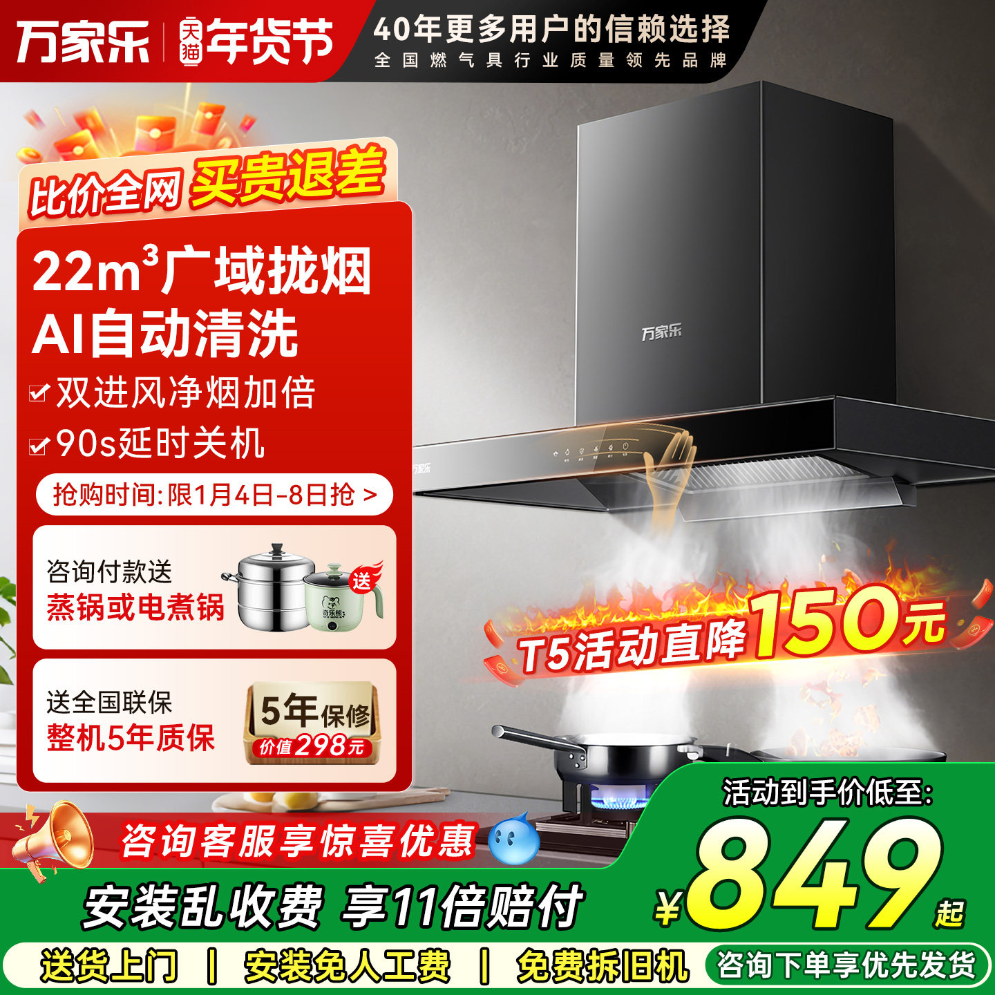 万家乐AT051顶吸抽油烟机欧式小型厨房油烟机家用大吸力T型机T4R1