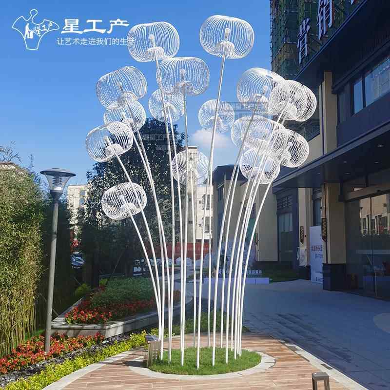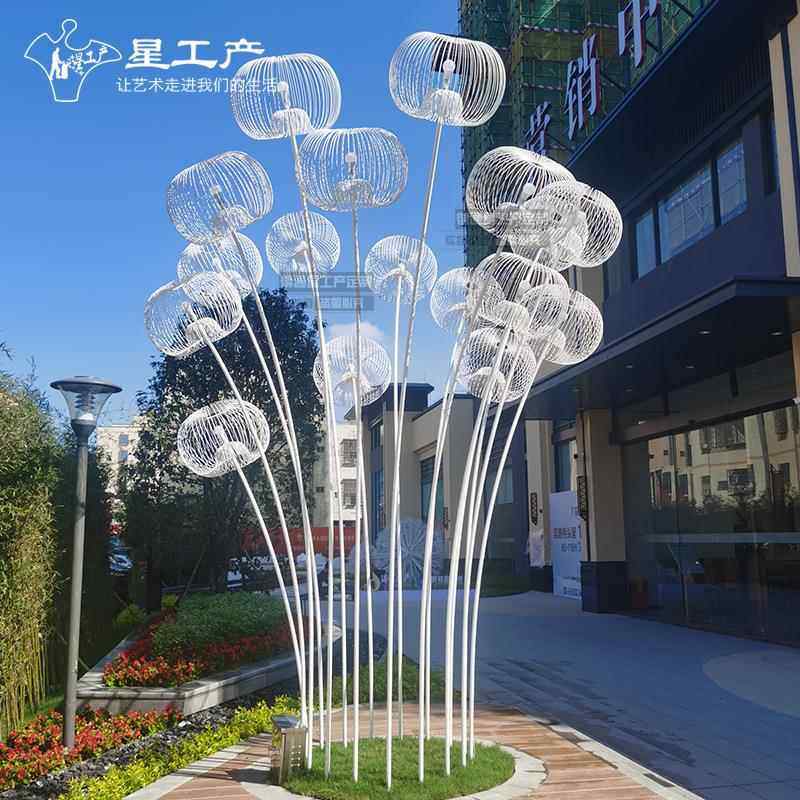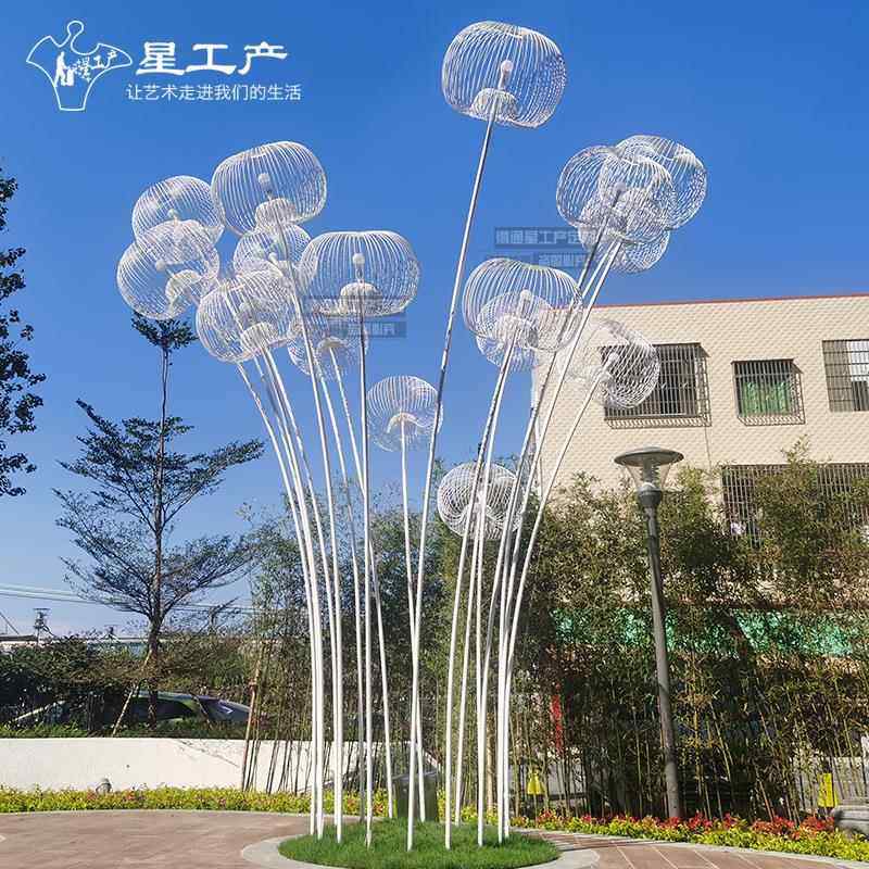 园林景观小区售楼处营销中心绿地不锈钢金属蒲公英雕塑软装摆件