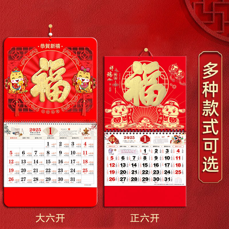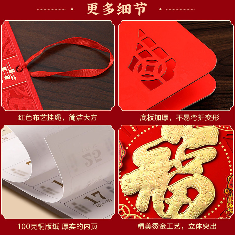 金箔福字2026年挂历新款家用挂墙式马年日历手撕历大号月历公司老黄历新年