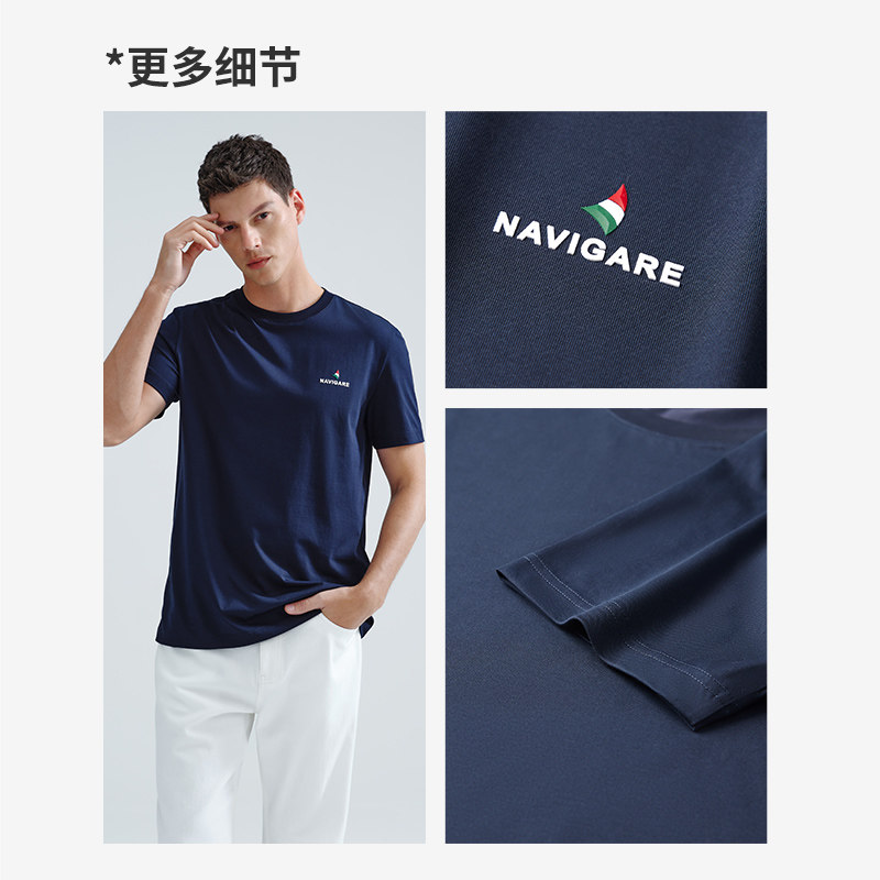Navigare意大利小帆船凉感男士休闲T恤2026夏季圆领短袖体恤