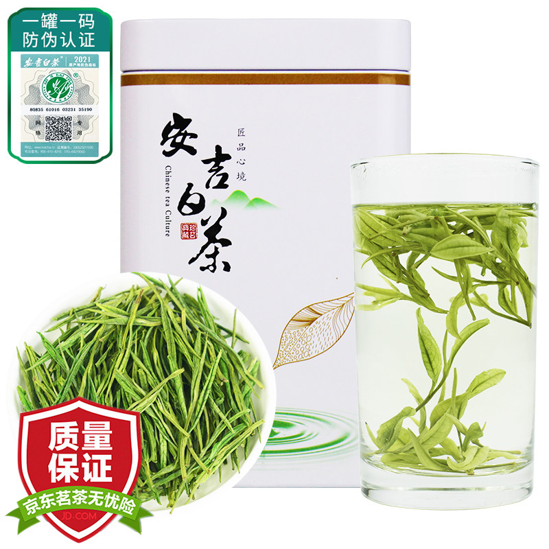 承艺安吉白茶茶叶新茶绿茶白茶茗茶春茶100克罐装雨前一级