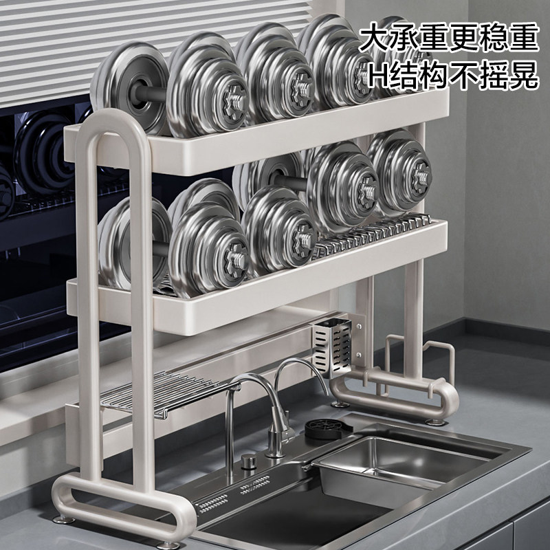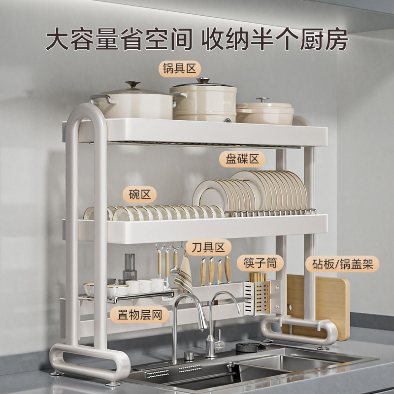 奶油风厨房不锈钢水槽置物架水池洗碗架多功能收纳放碗盘沥水碗柜