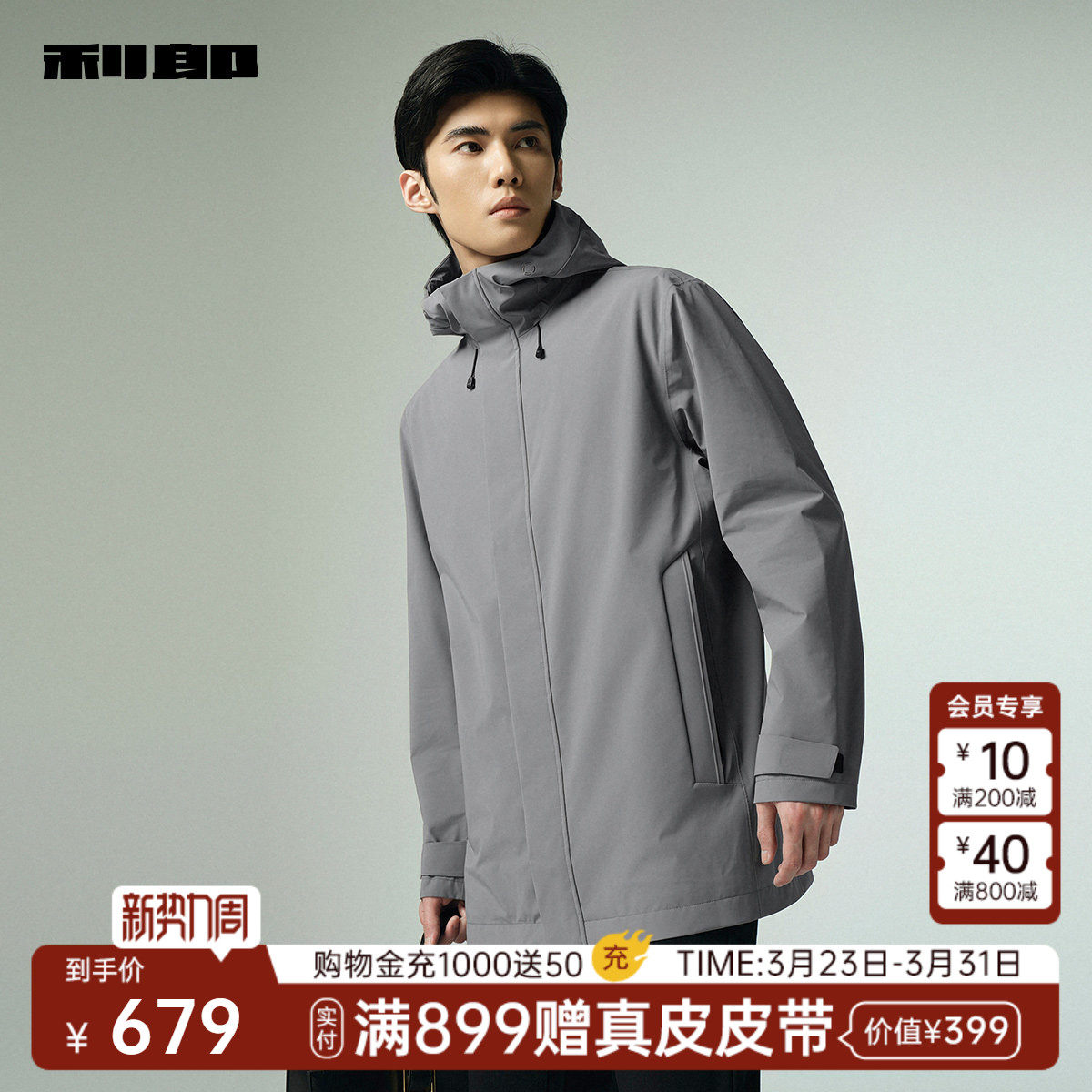 【防水/芯暖棉】利郎厚款风衣男士春秋款中长款连帽男装外套