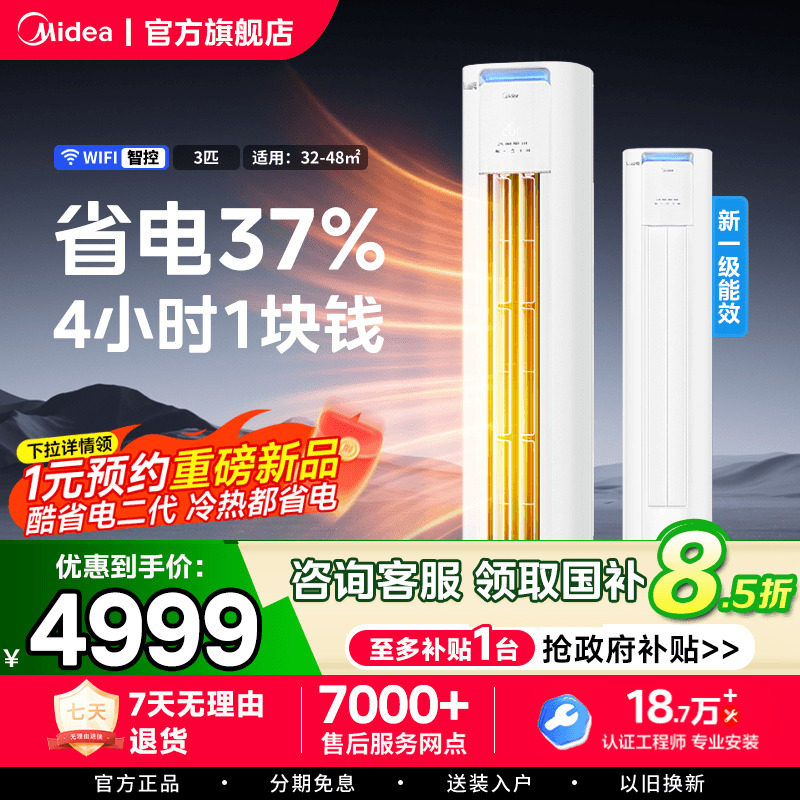 【政府补贴】美的立式空调一级变频冷暖2P3匹家用柜机酷省电官方
