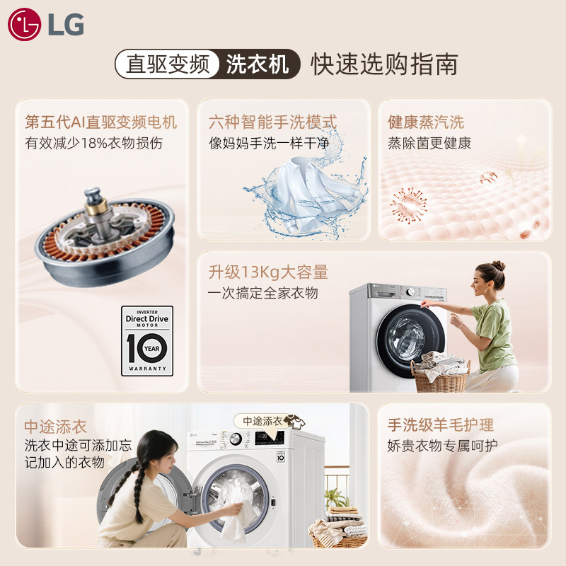 LG洗烘套装13+10KG全自动滚筒洗衣机进口烘干机组合家用除菌除螨Y
