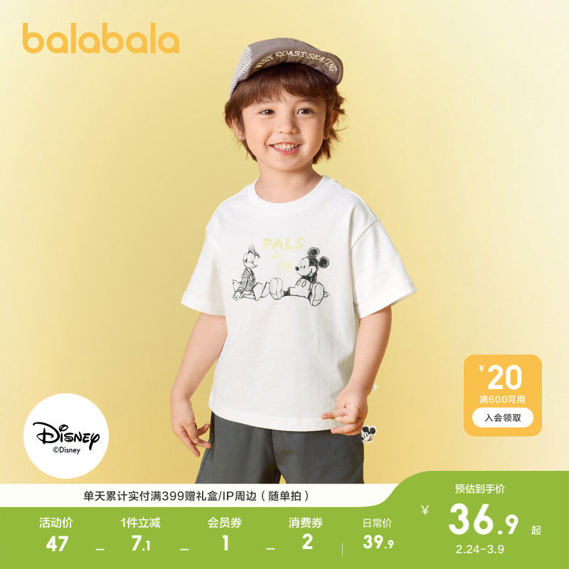 【迪士尼IP】巴拉巴拉童装儿童短袖t恤轻薄新款男女童夏亲子上衣