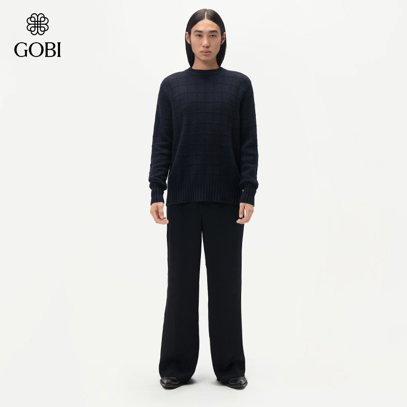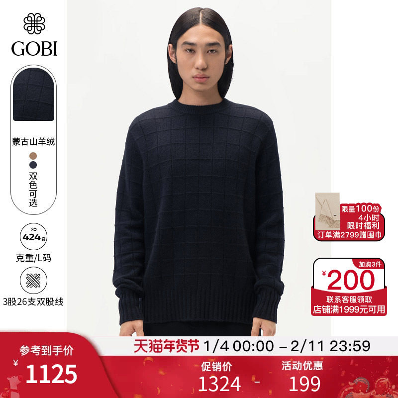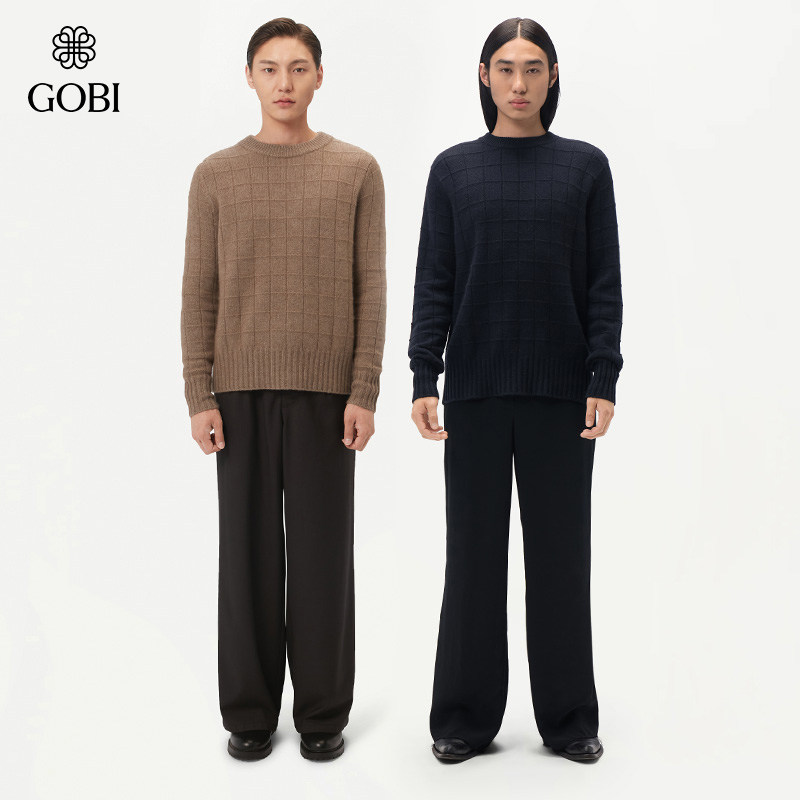 GOBI戈壁秋冬圆领简约气质羊绒衫男士山羊绒毛衣外套MK230