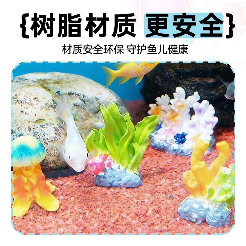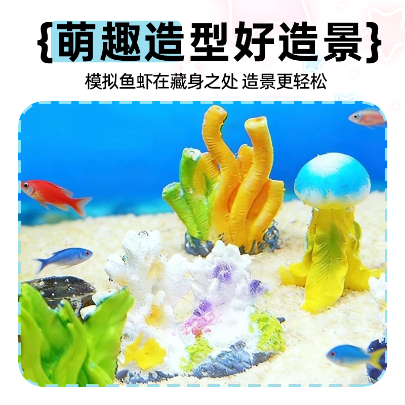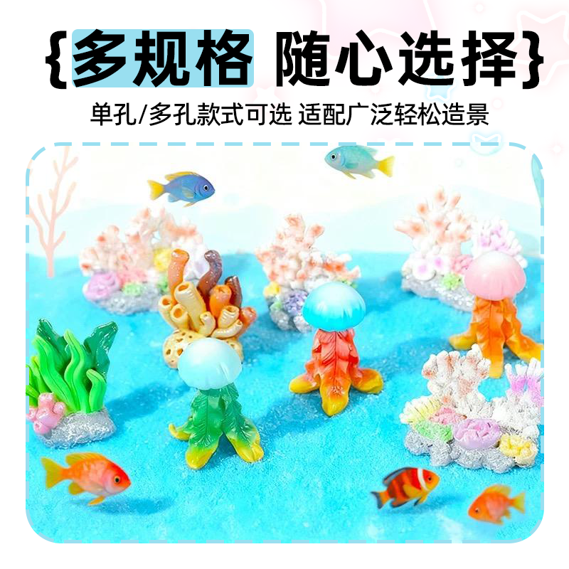 仿真海底珊瑚生物造景装饰品水母公仔鱼缸装饰树脂摆件大型造型