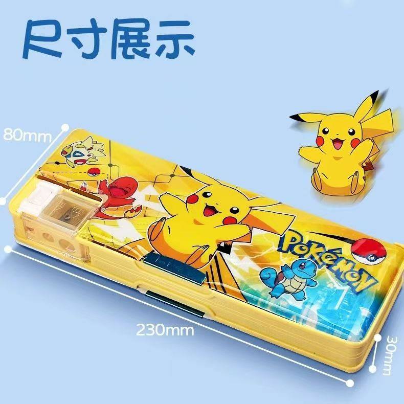 皮卡丘文具盒男孩款大容量多功能网红高颜值ins可爱精灵宝可梦塑料双面铅笔盒耐摔儿童一年级中小学生收纳盒