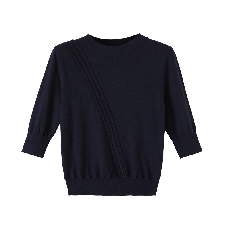 三福长袖上衣2025新款秋季圆领修身针织衫简约纯色内搭打底衫女装