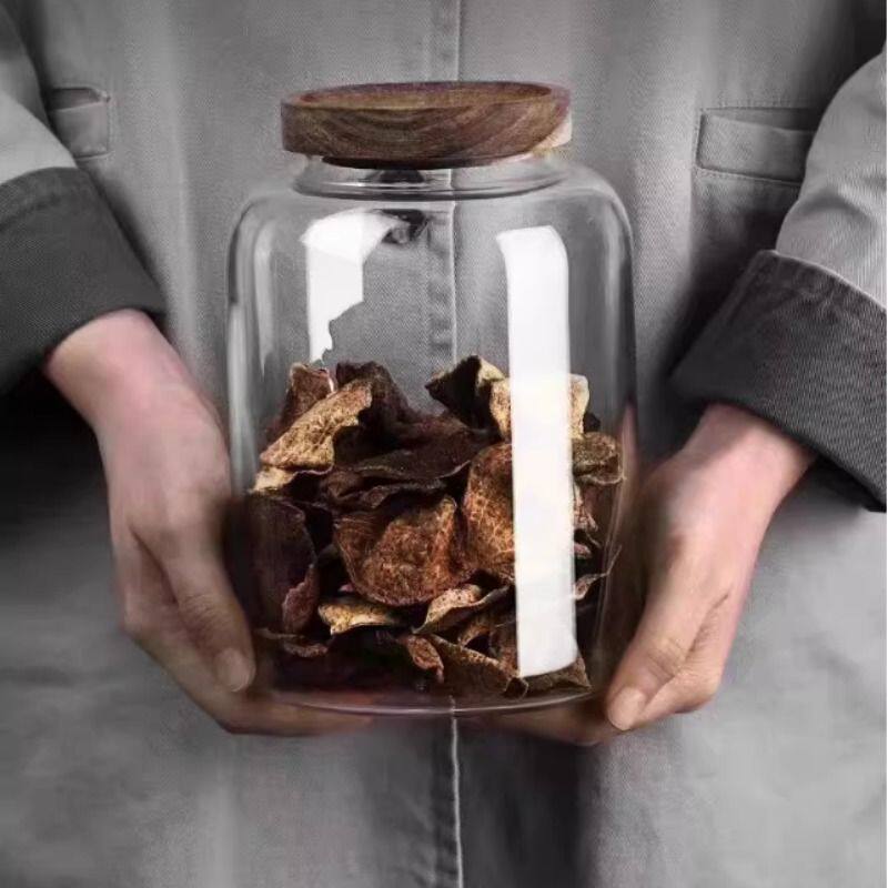 食品级木盖竹盖PET塑料罐高清亚克力加厚密封罐陈皮密封罐展示瓶