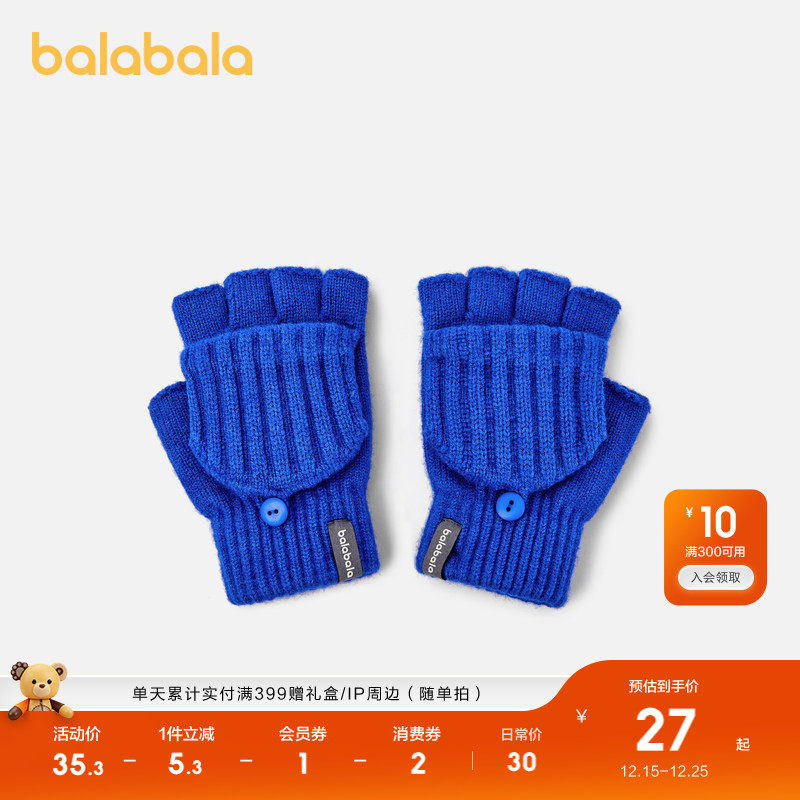 巴拉巴拉儿童手套男女童翻盖保暖中大童外出户外冬季舒适温暖新款