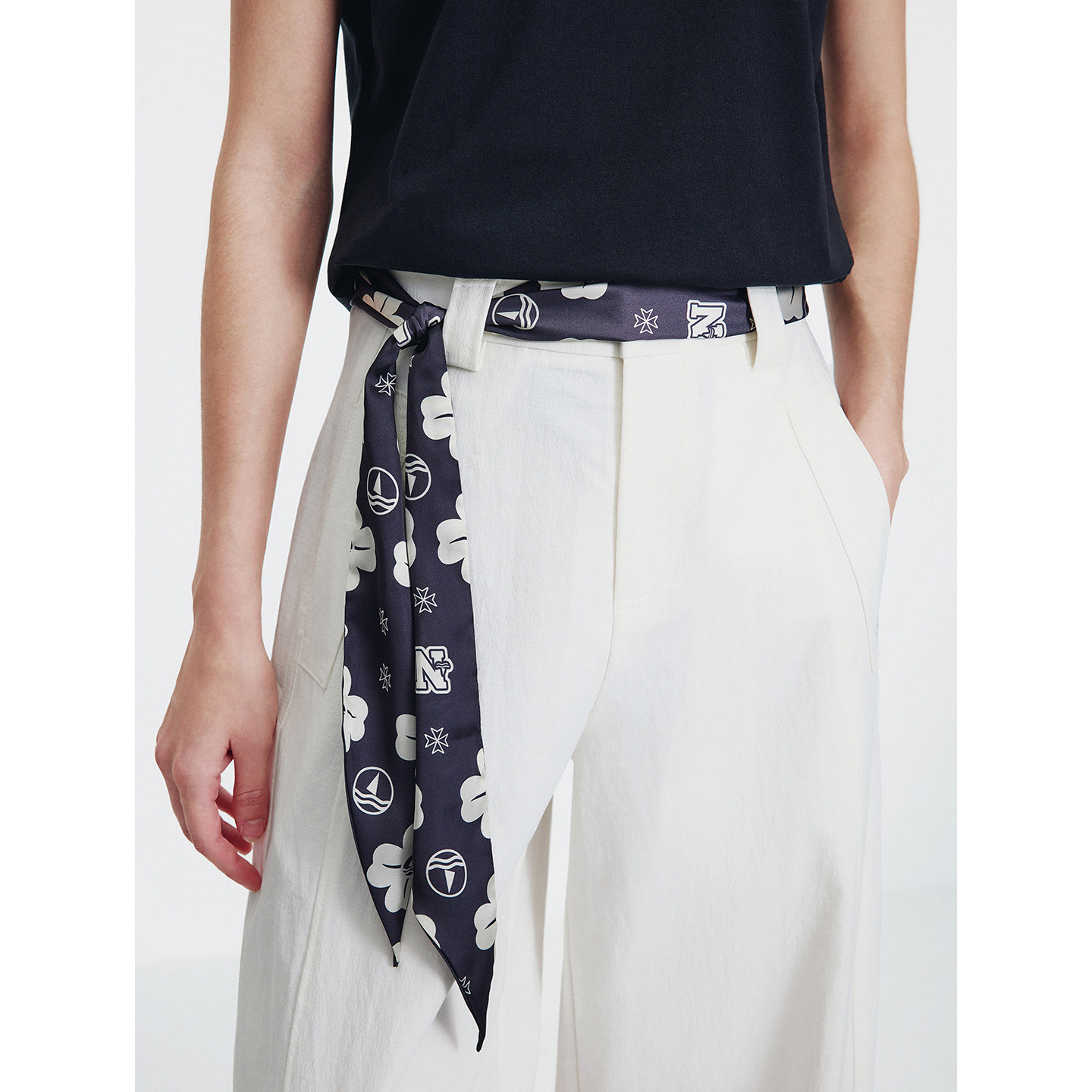 Navigare意大利小帆船印花装饰丝巾男女百搭三角巾高级感黑白领巾